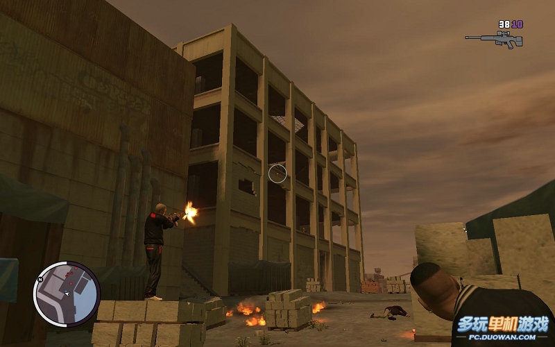這場戰斗不算很難;因為有MORI這個瘋子在前面拿著AK在掃;所以你大可以躲在后面讓MORI干掉這些家伙;不過要小心樓上的RPG發射手拿狙擊干掉即可。