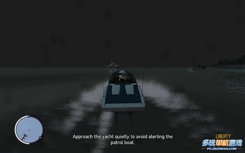 到大地圖開著快艇到目的地;目標是中間的那個大型游艇;登上游艇