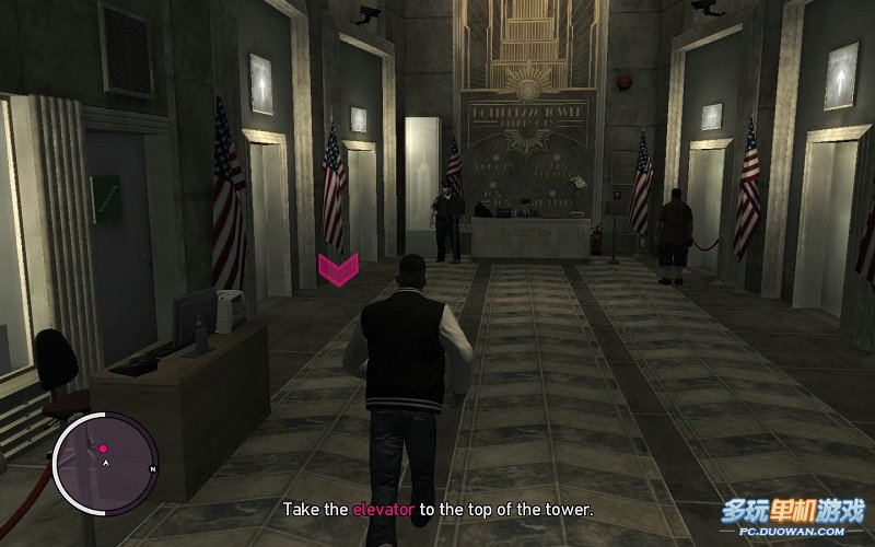 繼續回到YUSURF那里接任務,這次則是要你去高塔那里去和他們的朋友會面。出門到達目的地;乘坐電梯到最高層