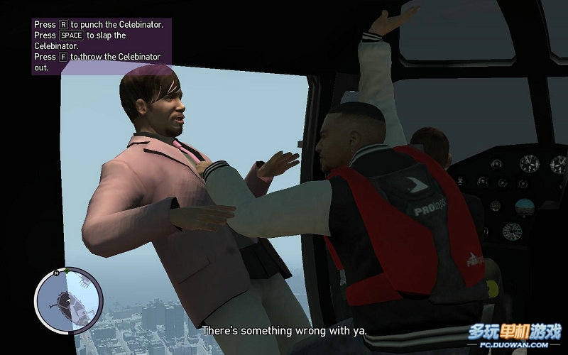 飛到指定位置;就可以進行劇情了;扔掉celebinator之前;你可以先按R或者SPCACE 拳擊或者掌摑celebinator;你也可以直接按F扔他下去直接進行劇情;反正都是一樣的