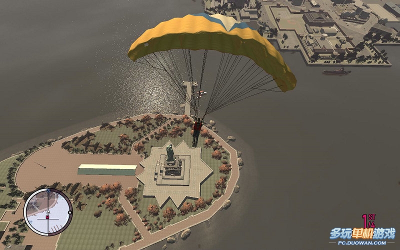 第一項就是跳傘??梢韵劝碬加速,提高你的初始加速度;然后打開降落傘,按W降落到快艇的位置。