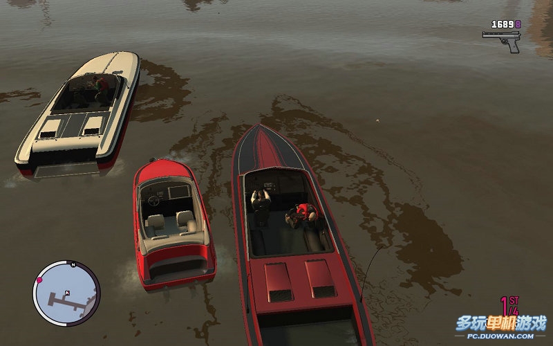 然后上快艇,沿著前面的指示方向路線前進即可。注意,這里不能殺人,不然就算你輸了