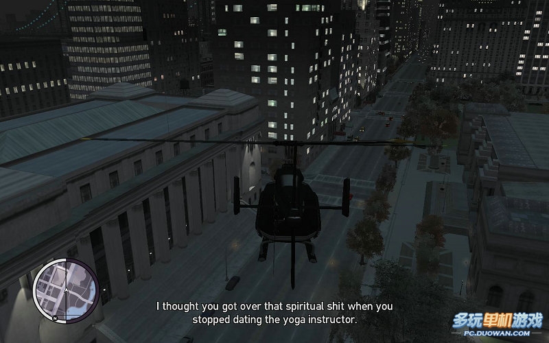 這個任務有四個要求,第一時間在8分50秒內,第二直升飛機損壞值要0%,第三就是要持續保持接近跟蹤目標;第四個就是始終保持低空飛行。最后兩個很不容易,因為直升飛機的操控算是GTA相當有技巧的一點如果實在覺得鍵盤操控不方便的話,建議換手柄來操控直升飛機