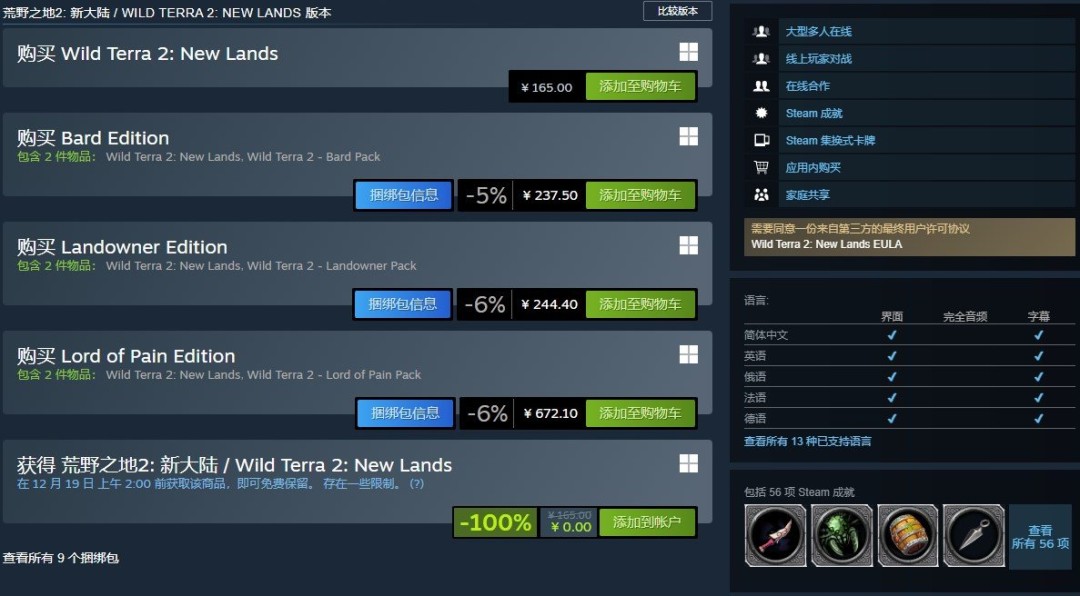 現在就把《荒野之地2》添加到你的Steam庫,和好友一起,共同走進這個滿是活力、危機與契機的中世紀世界吧!