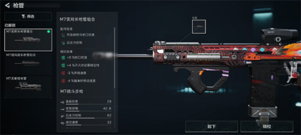 與堤風長槍管相比,這套槍管在不明顯削弱機動的情況下,提高了射程和后坐力控制,與整體配置契合度更高。