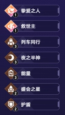 1摯愛之人、1救世主、3列車同行、3夜之半神、3能量、2盛會之星、2護(hù)盾